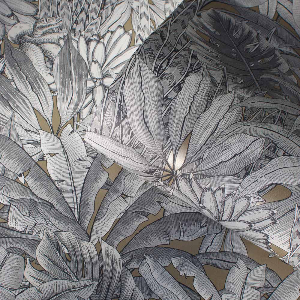 Transform your space into a vibrant jungle retreat with Muriva Lush Forest Gold Wallpaper. This captivating design brings the energy of a tropical paradise indoors, featuring vivid plants and playful animals for a truly immersive experience. The striking design adds depth and colour, while its metallic accents lend a touch of sophisticated elegance. Easy to hang with paste-the-paper application, this wallpaper boasts an offset design match with a 53cm repeat. Each roll measures 10.05m in length and 53cm in width. Simple cleaning ensures its enduring charm, making it a beautiful and practical choice for living rooms, bedrooms, or any room seeking a contemporary jungle aesthetic.