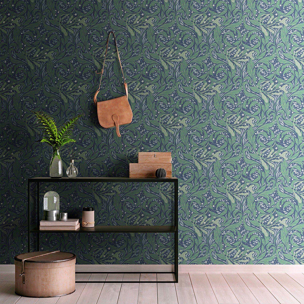 Evoking the elegance of the Arts and Crafts movement, Vale Leaf wallpaper showcases a stunning woodblock-printed design. Delicate leafy trails and vines, accented with metallic ink, create a sophisticated statement piece ideal for any living area. Its easy-to-hang application ensures a straightforward installation.