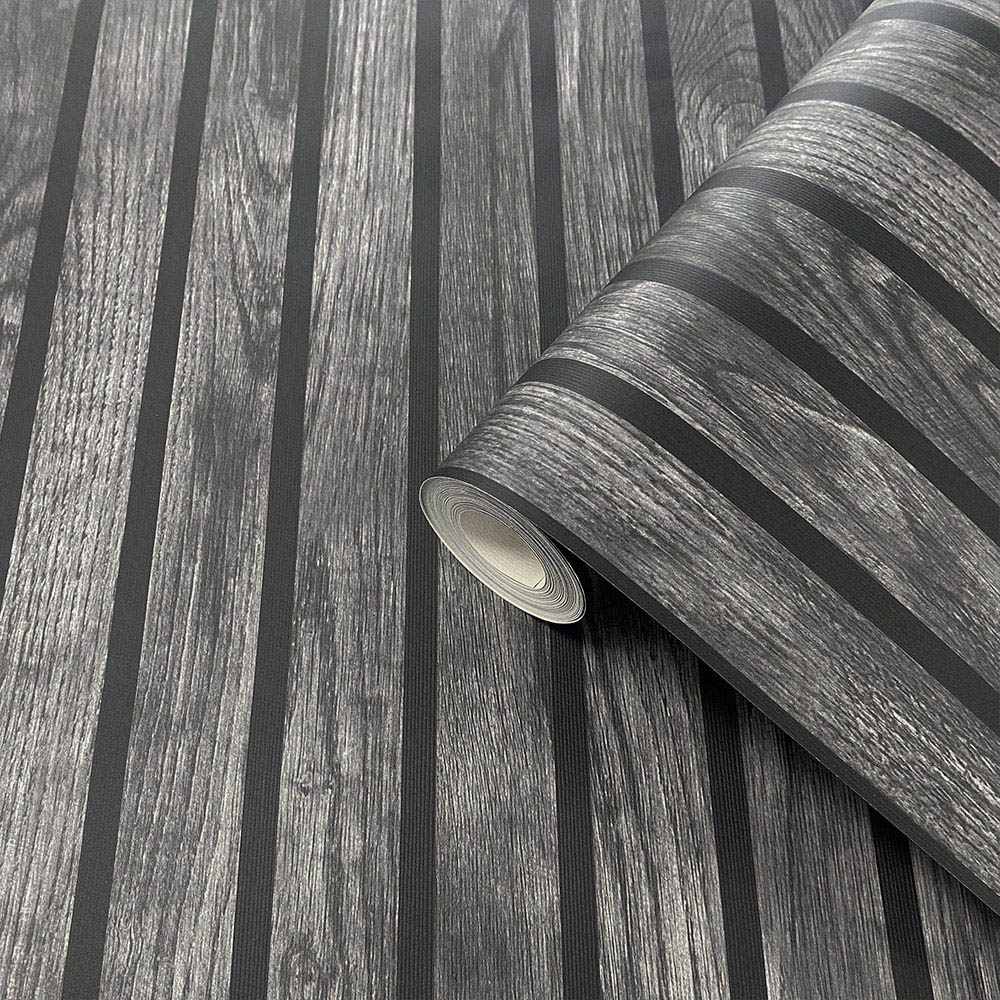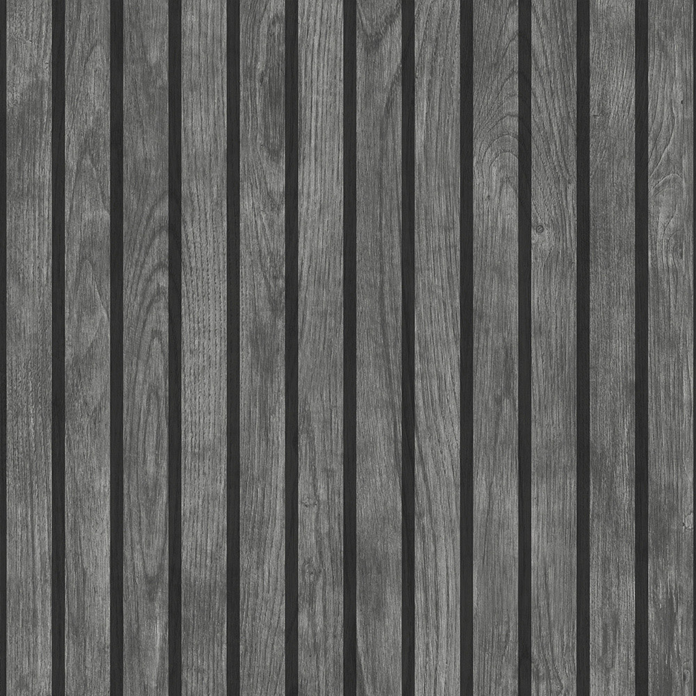 Muriva Wooded Slats Black Wallpaper