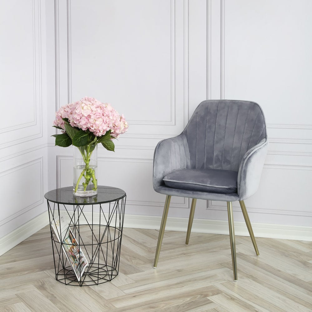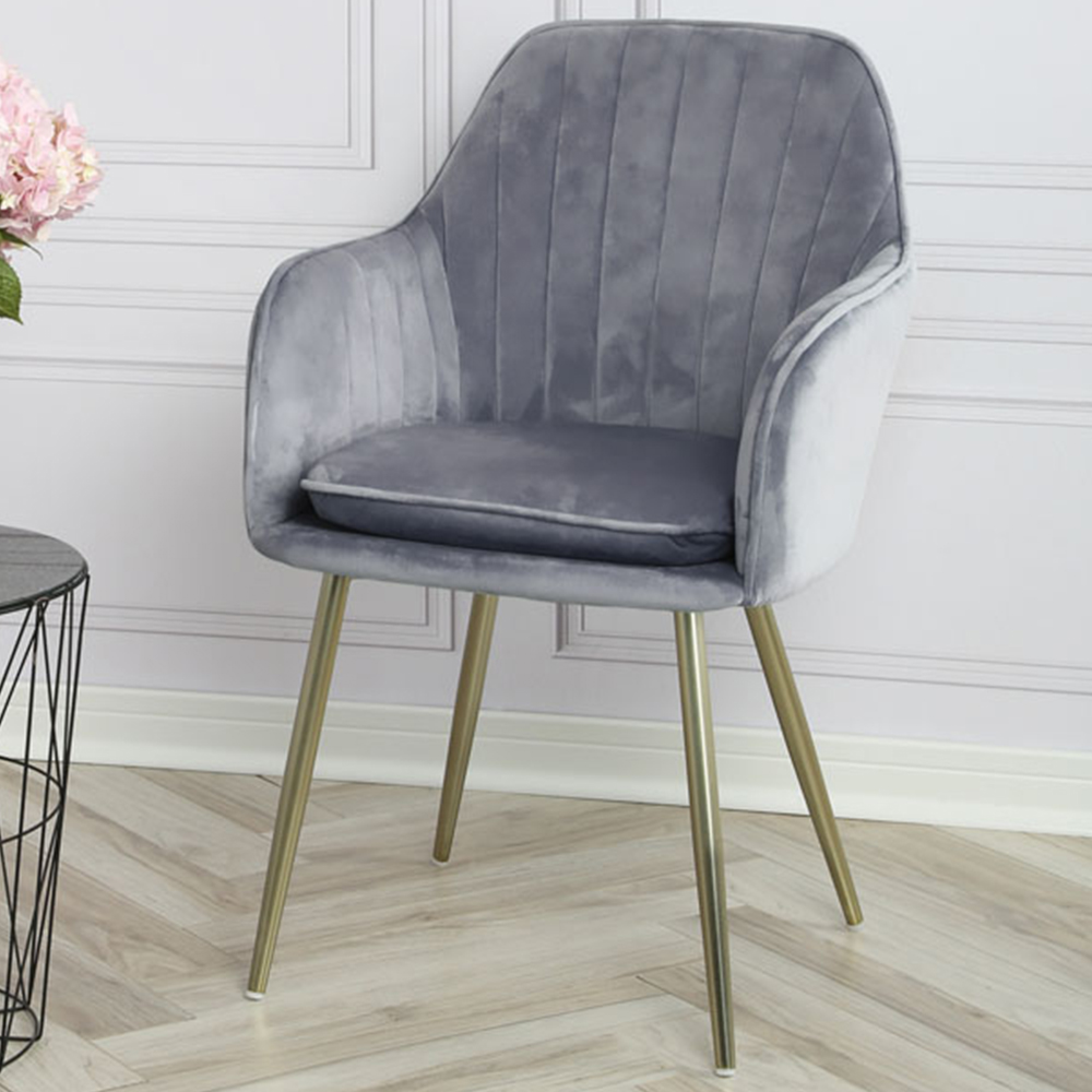 Muse Grey Velvet Accent Chair with Golden Legs Set of 2