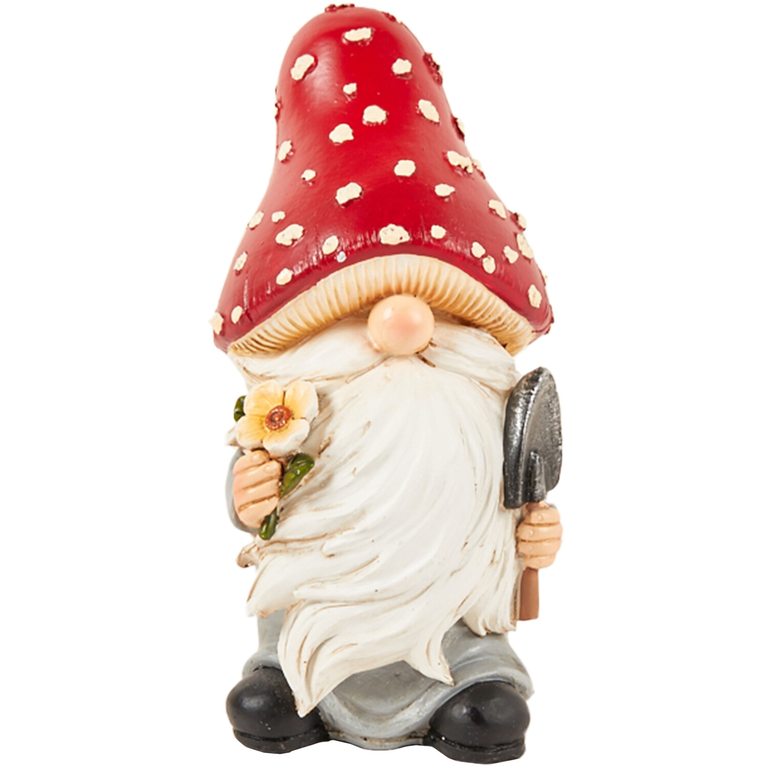 • Features a cute gnome wearing a bright mushroom cap