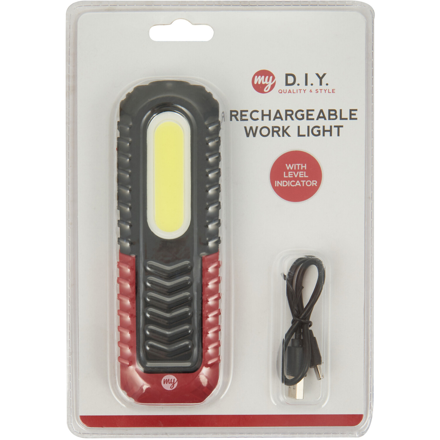 Illuminate your workspace with this robust and powerful rechargeable work light. Delivering 350 lumens of brightness, its rotating body offers versatile positioning. The integrated magnetic base and swivel hook provide convenient hands-free operation, ideal for any handyman or DIY enthusiast tackling projects in dimly lit areas.