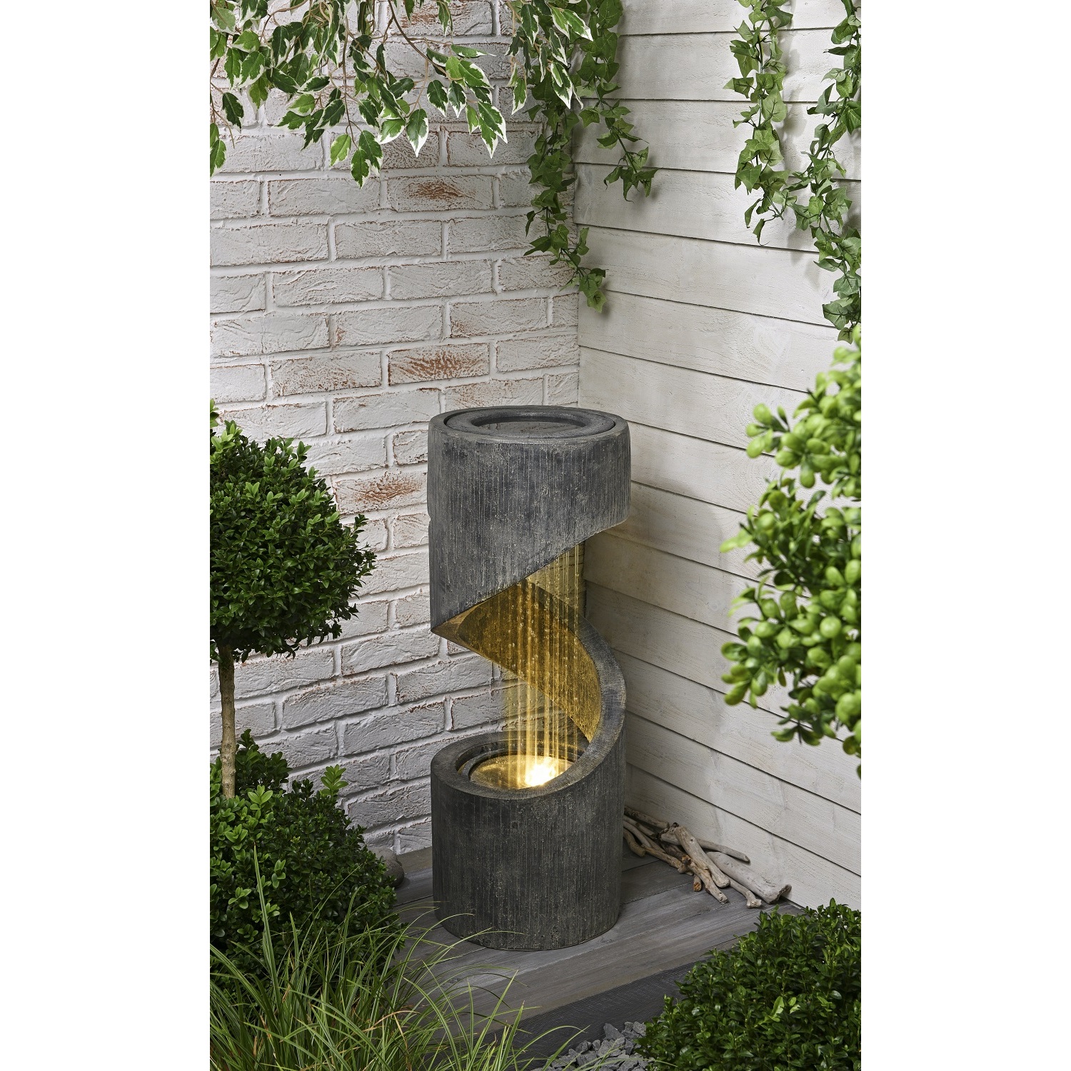 My Garden Grey Polyresin Twirl Fountain with LED Light