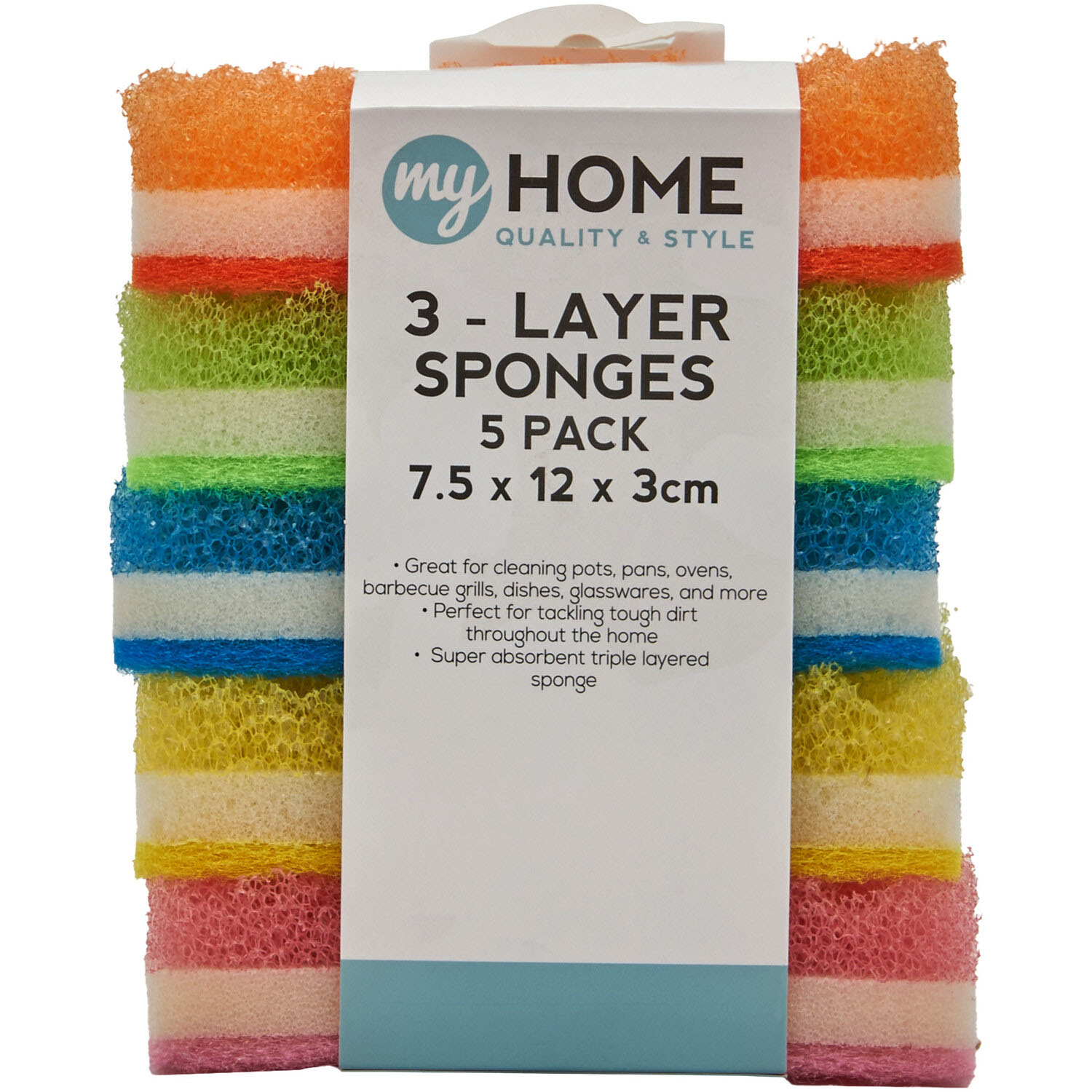 Five vibrant, 3-layer sponges for effective cleaning throughout your home. Super absorbent and tough, these versatile sponges come in a pack of five.