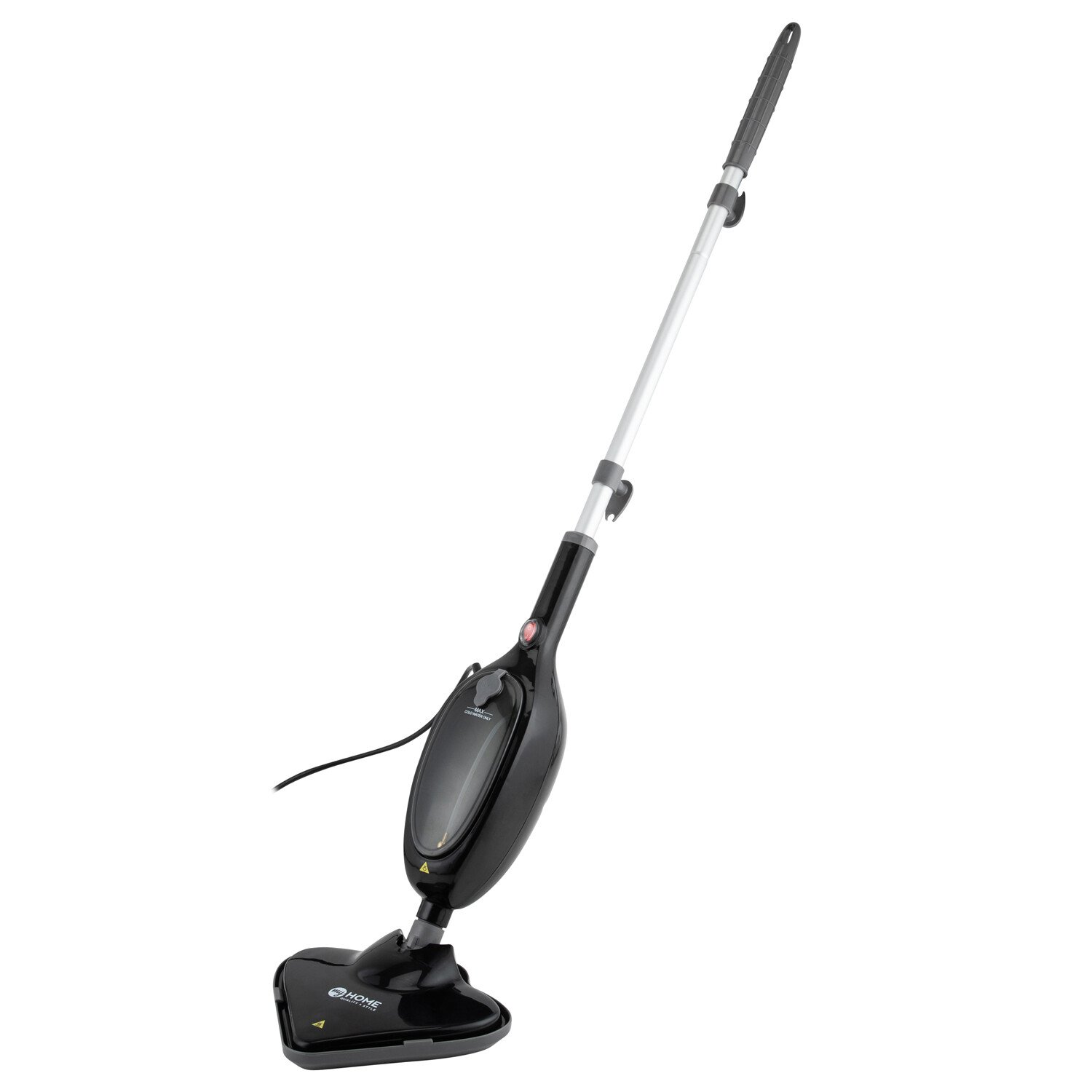 Effortlessly clean hard floors with this steam mop. Quick heating ensures speedy cleaning. Its triangular head and 180° swivel reach every corner, even under furniture. Perfect for tiles, linoleum, and marble. Includes a carpet glider for rug cleaning, a microfiber cloth for a sparkling finish, and a measuring jug for easy refills.