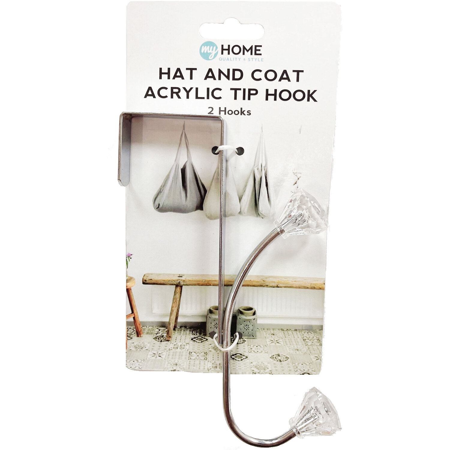 This chic, acrylic-tipped hook from My Home keeps your entryway organised. Designed for easy installation over any door, this space-saving hook adds a touch of elegance to your home. Perfect for hanging hats, coats, scarves, bags, and more, it's the ideal solution for maximising storage in smaller areas.