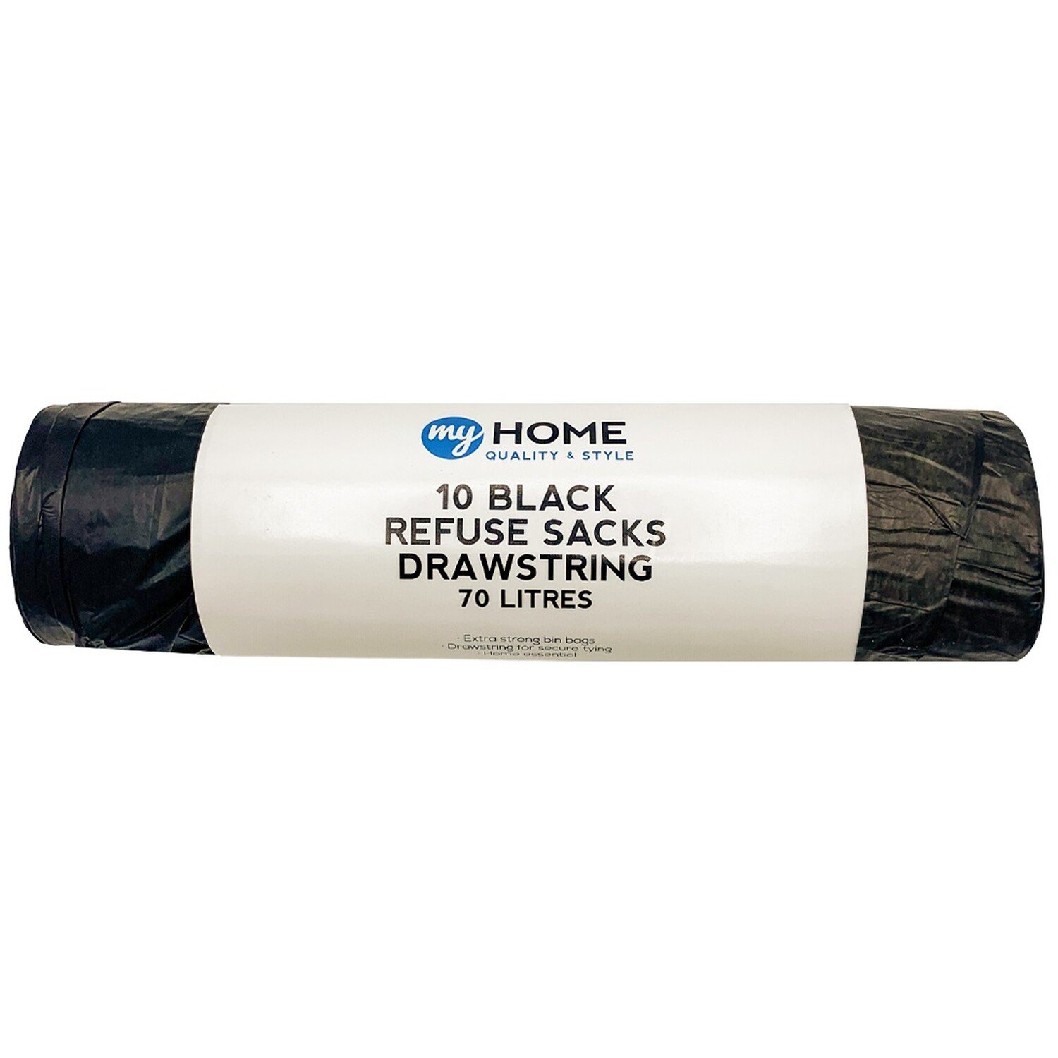 My Home Pack of 10 Refuse Sacks Drawstring 70L - Black