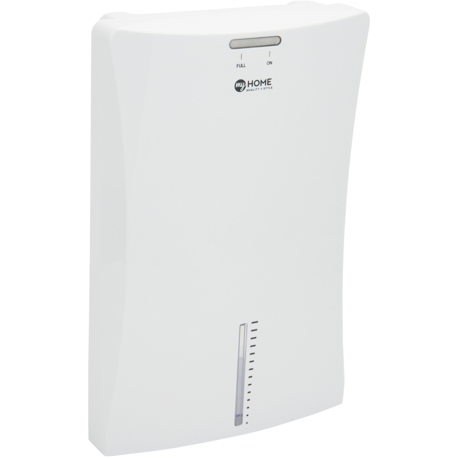 The My Home Signature Mini Dehumidifier effectively reduces mould, dampness, and condensation in smaller spaces. Its compact design and 1800ml tank make it ideal for homes, dorms, or offices. A red LED light signals a full tank, automatically stopping the unit. Employing a silent Peltier system (no compressor), it quietly removes 500-700ml of moisture daily with its double cooling system. The detachable cover simplifies tank cleaning.