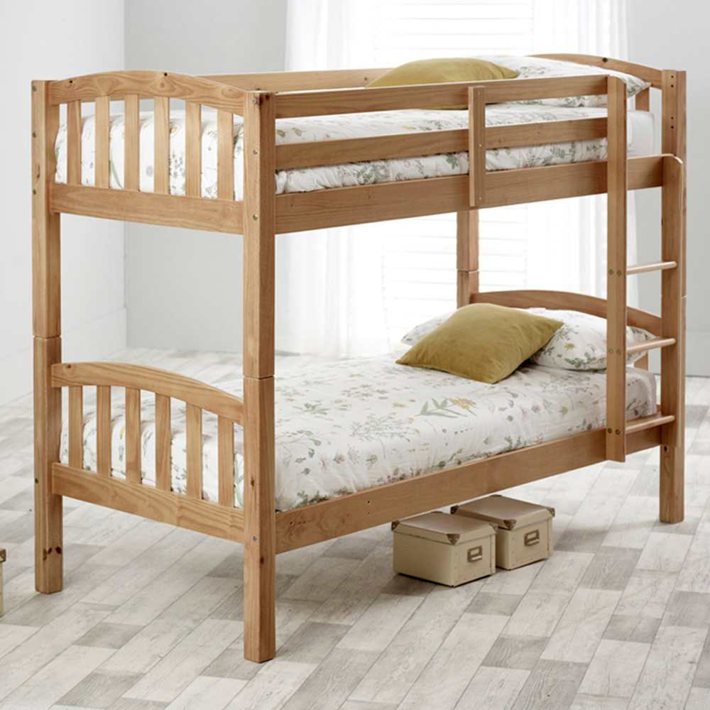 Introduce a touch of classic style to any bedroom with the Bedmaster Mya Pine Bunk Bed. Skillfully crafted from superior pine wood, this bunk bed provides both strength and enduring style. The attractive pine finish effortlessly complements a variety of interior designs. Prioritising safety, the top bunk features four guard rails, with two additional rails on each side, ensuring a secure sleeping environment.