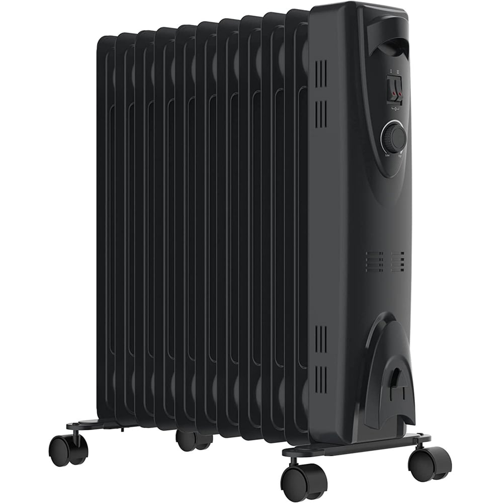 Enjoy reliable warmth with this cost-effective oil-filled heater. Its rapid heating and slow cooling properties ensure energy efficiency, providing consistent comfort for your home or business. The stylish charcoal colour complements any décor, adding a touch of sophistication to your space. Select from three heat settings (1000W, 1500W, and 2500W) to perfectly match your needs, from gentle warmth on milder days to intense heat during colder periods. Mobility is effortless thanks to the integrated carry handle and easy-roll castors, allowing you to conveniently move the heater between rooms. Maintain your desired temperature with the adjustable thermostat, the heater automatically switches on and off to conserve energy. Prioritising safety, this heater features tip-over switch protection and overheat safety protection. Convenient cord storage on the unit itself makes transportation and storage a breeze.