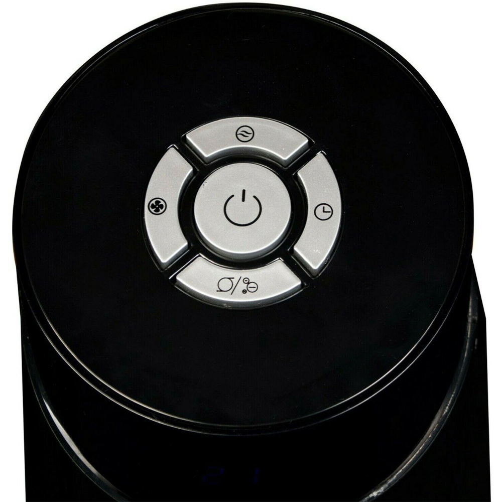 Enjoy cool comfort anywhere with this 34-inch black tower fan. Its slim design blends seamlessly into any décor. Circulate cool air throughout the room using the oscillation function, or keep it stationary for targeted cooling. Three speed settings offer customisable comfort, and the 8-hour timer lets you schedule operation. A built-in ioniser releases refreshing negative ions for a naturally relaxing cooling experience. Simple controls, a clear LED display, and a remote control make operation effortless. The enclosed blades and noise-cancelling design ensure quiet, distraction-free cooling.