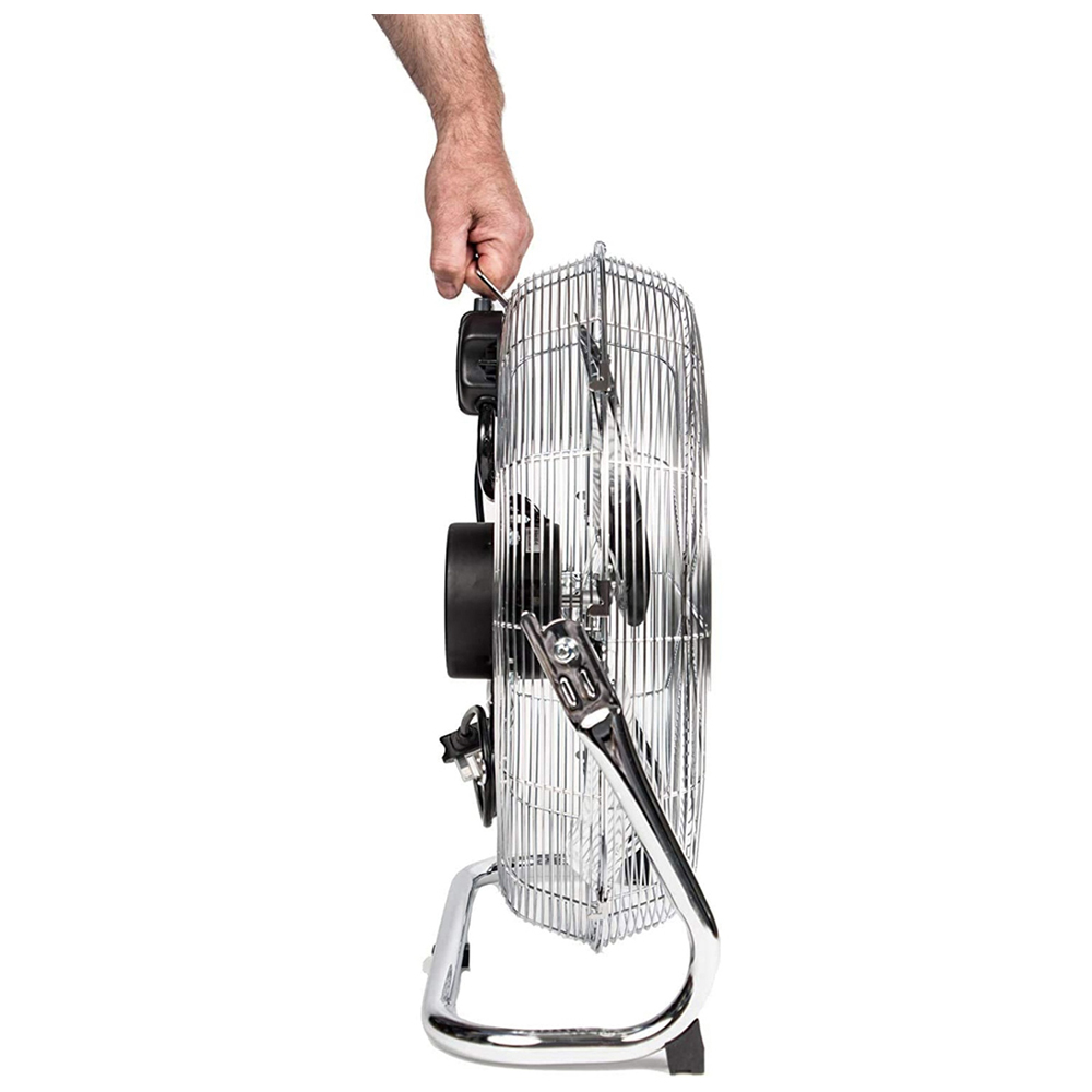 Stay cool and comfortable all summer with the MYLEK 20-inch High-Velocity Floor Fan. This subtly designed fan delivers powerful cooling to homes, offices, and even large spaces like warehouses and gyms. Choose from three speed settings for customized airflow and adjust the tilt for optimal air direction. The durable chrome finish ensures years of reliable performance.