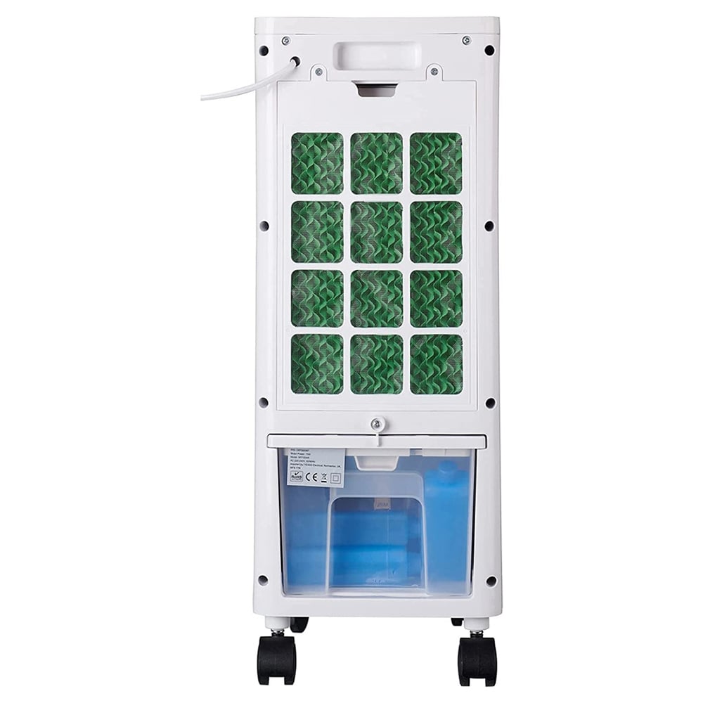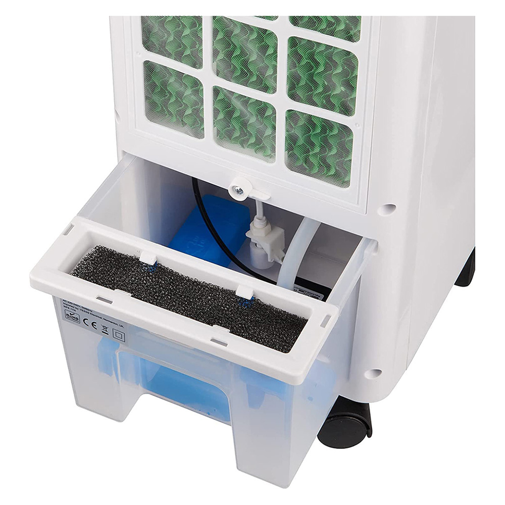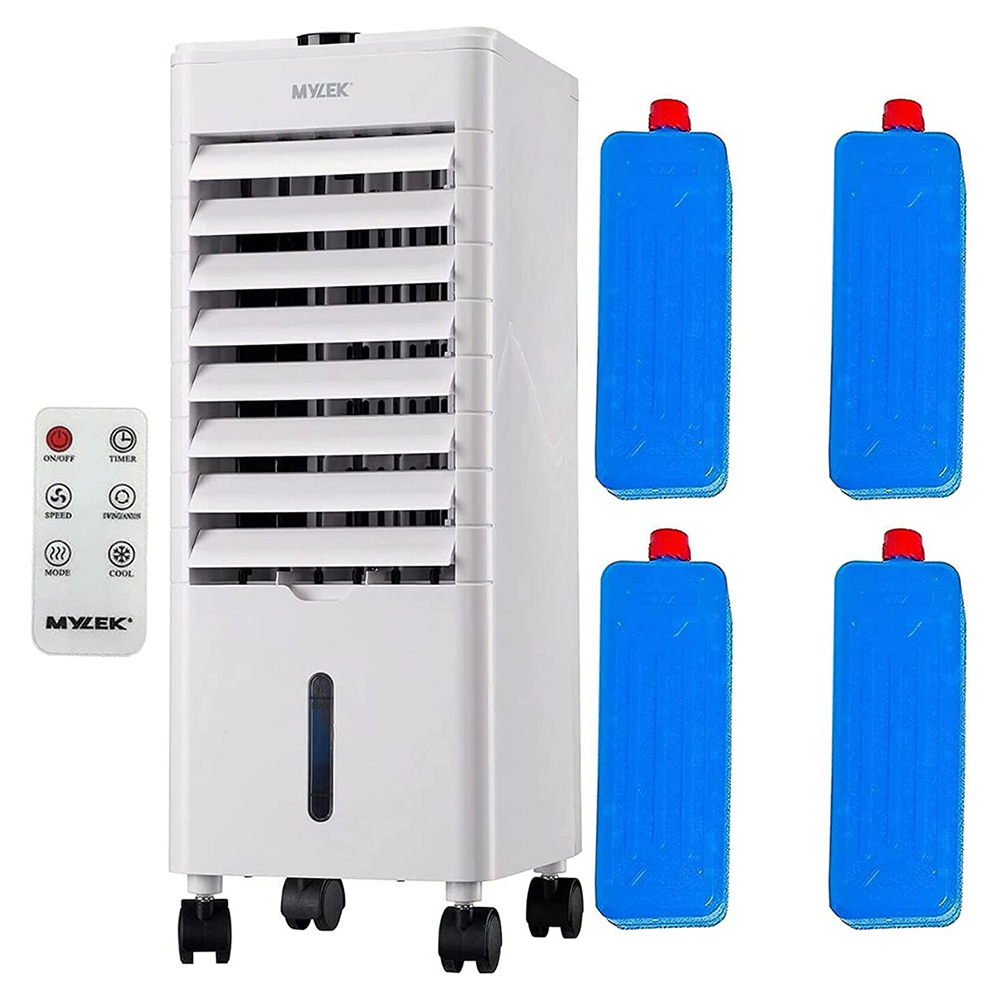 Cool your home naturally with the MYLEK White Air Cooler with Remote. This energy-efficient cooler uses evaporative cooling, consuming only 75W of power, making it both budget-friendly and eco-conscious. Enjoy cleaner air thanks to the negative ion function, which eliminates airborne pollutants down to 0.01 microns, such as allergens, pollen, mould, smoke, pet dander, odours, dust, and other irritants. Three fan speeds and three modes, including a natural breeze option, offer customizable airflow. A 12-hour timer and remote control provide ultimate convenience, while the 4L tank ensures fewer refills. For extra cooling, four ice packs are included.