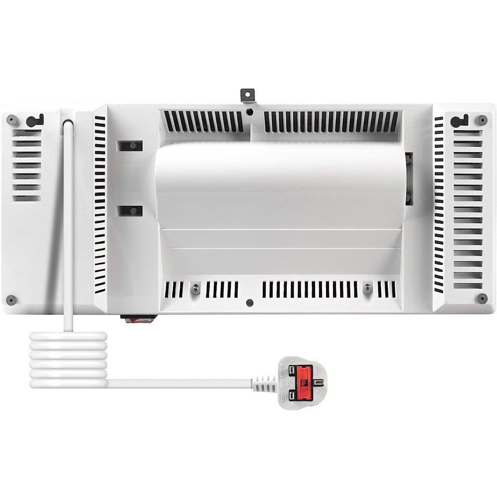 Enhance your space with this stylish white over-door air curtain, a perfect blend of functionality and modern aesthetics. Its clean white finish complements any décor, seamlessly integrating into your existing style. Enjoy precise temperature control with two heat settings (1000W and 2000W) and a convenient seven-day programmable timer. This versatile unit provides both warm and cool air, ensuring year-round comfort. The PTC heating element delivers rapid heating and slow cooling, maximising energy efficiency. Control is effortless with the included remote, allowing for adjustments from a distance – ideal for businesses or personal convenience. Manual control is also available. Safety is paramount, its IPX2 rating makes it suitable for bathroom installation (professional installation recommended). Overheating protection provides peace of mind, and the intelligent open window detection prevents energy waste by automatically shutting off when a nearby door or window is open. Simple wall mounting is ensured with all necessary fittings included. Dimensions: H22 x L52 x D11.5cm.