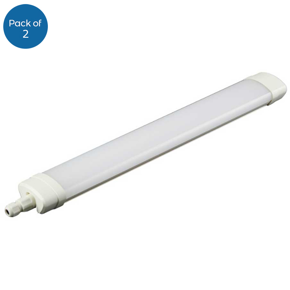 Illuminate your indoor spaces with the ENER-J 45W LED Triproof Batten. Its slim design and IP65 rating offer waterproof and dustproof protection, perfect for a variety of locations. Delivering 4000 lumens at 45 watts with a CRI exceeding 80, this batten provides bright, even illumination. Ideal for wet rooms, workshops, or even living spaces, its 160-degree beam angle ensures shadow-free lighting. Free from harmful UV, IR, lead and mercury, and boasting CE, RoHS, LVD, and FCC certifications, this batten offers a reliable and safe lighting solution.