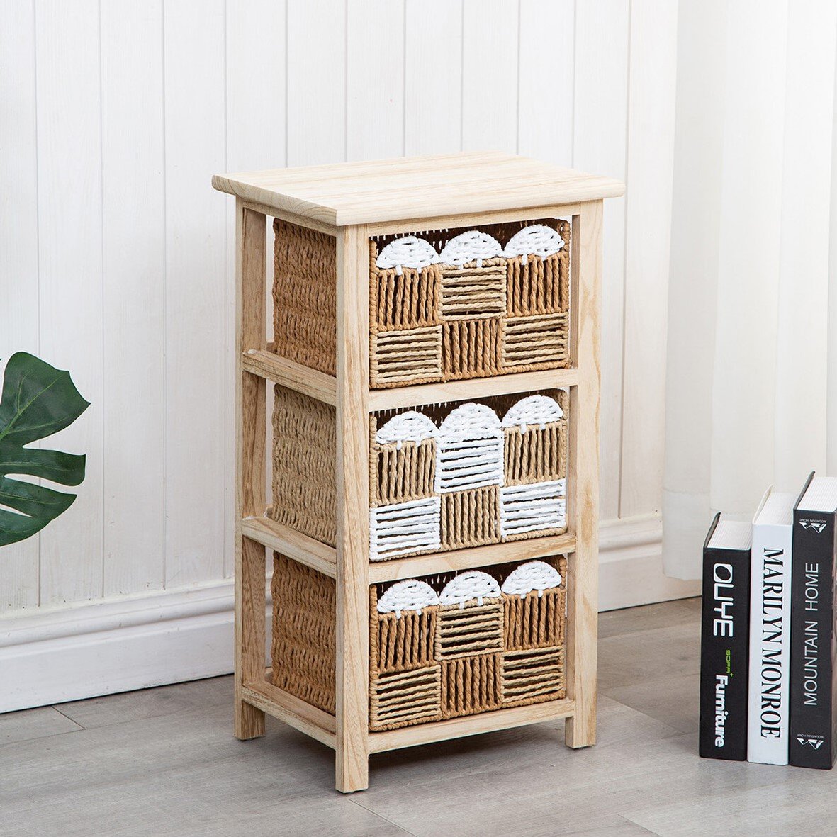 This charming storage tower offers a fresh, elegant solution for tidying any room. Its neutral white and natural design effortlessly complements existing décor, adding a rustic-modern touch to your home. Multiple drawers provide ample storage, creating a clean and inviting atmosphere. Perfect for brightening your space and keeping clutter at bay.