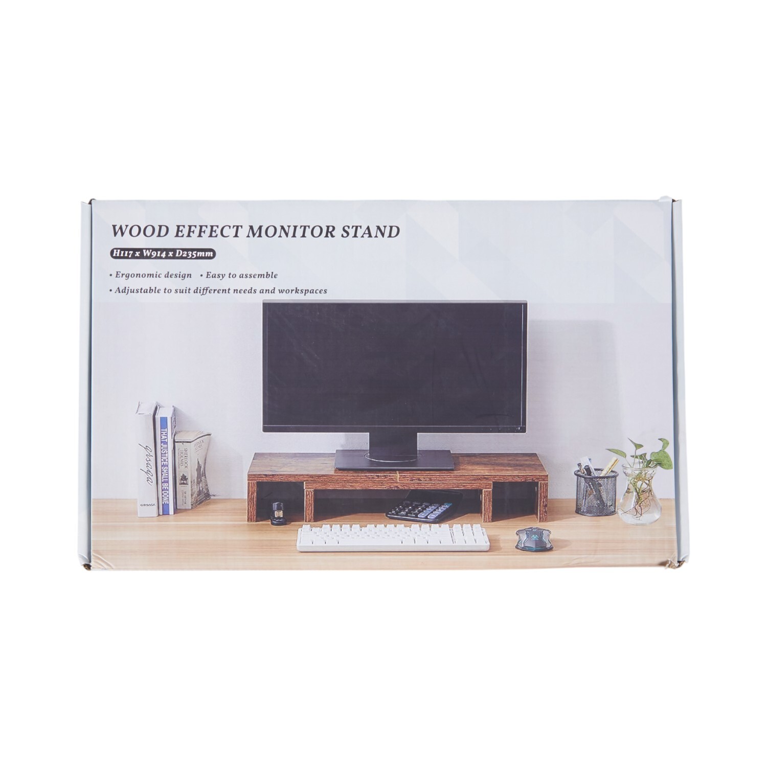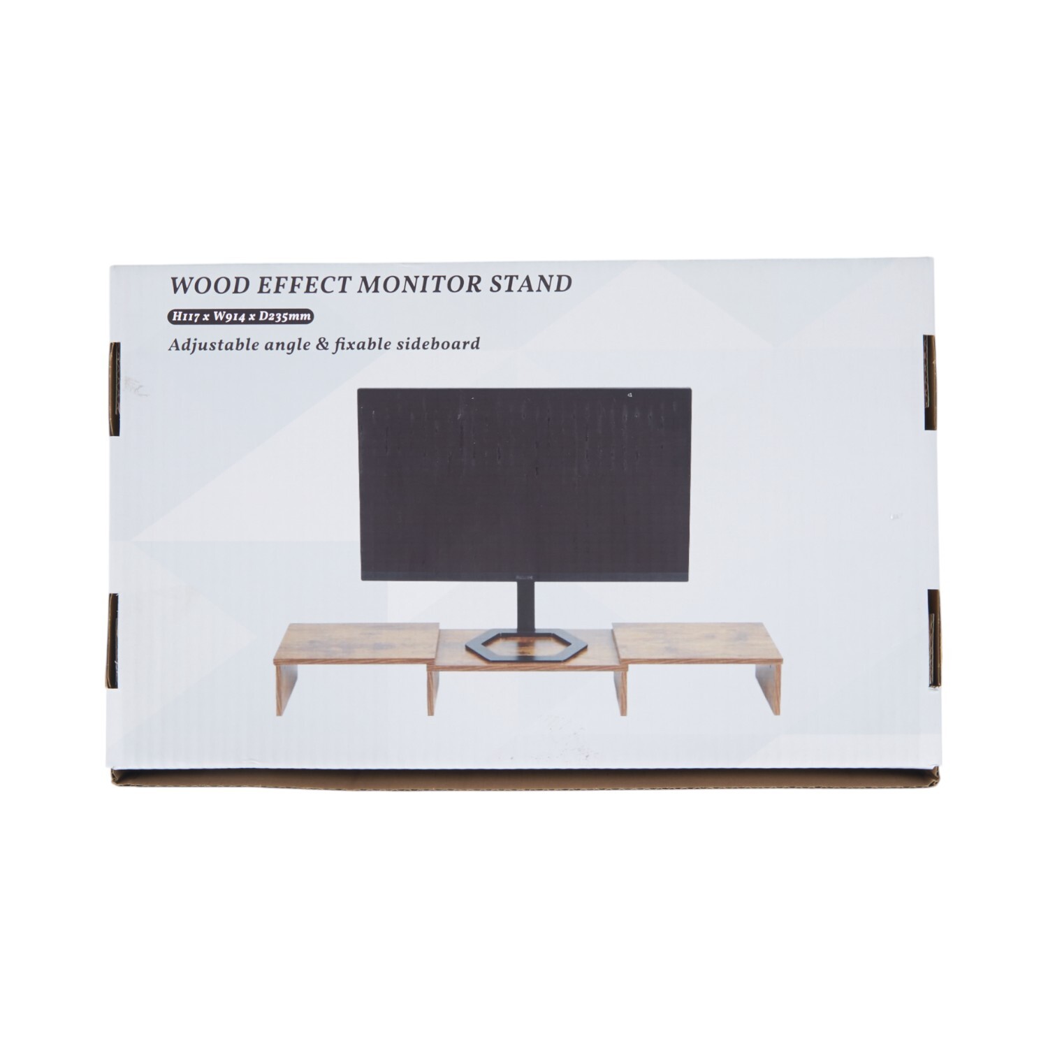 Upgrade your desk with this elegant Natural Wooden Monitor Stand. It is crafted from 100% wood with a rich wood-effect finish, it supports monitors up to 10kg. The adjustable angle and fixable sideboard offer a tailored setup, combining comfort, style, and practicality for any workspace.