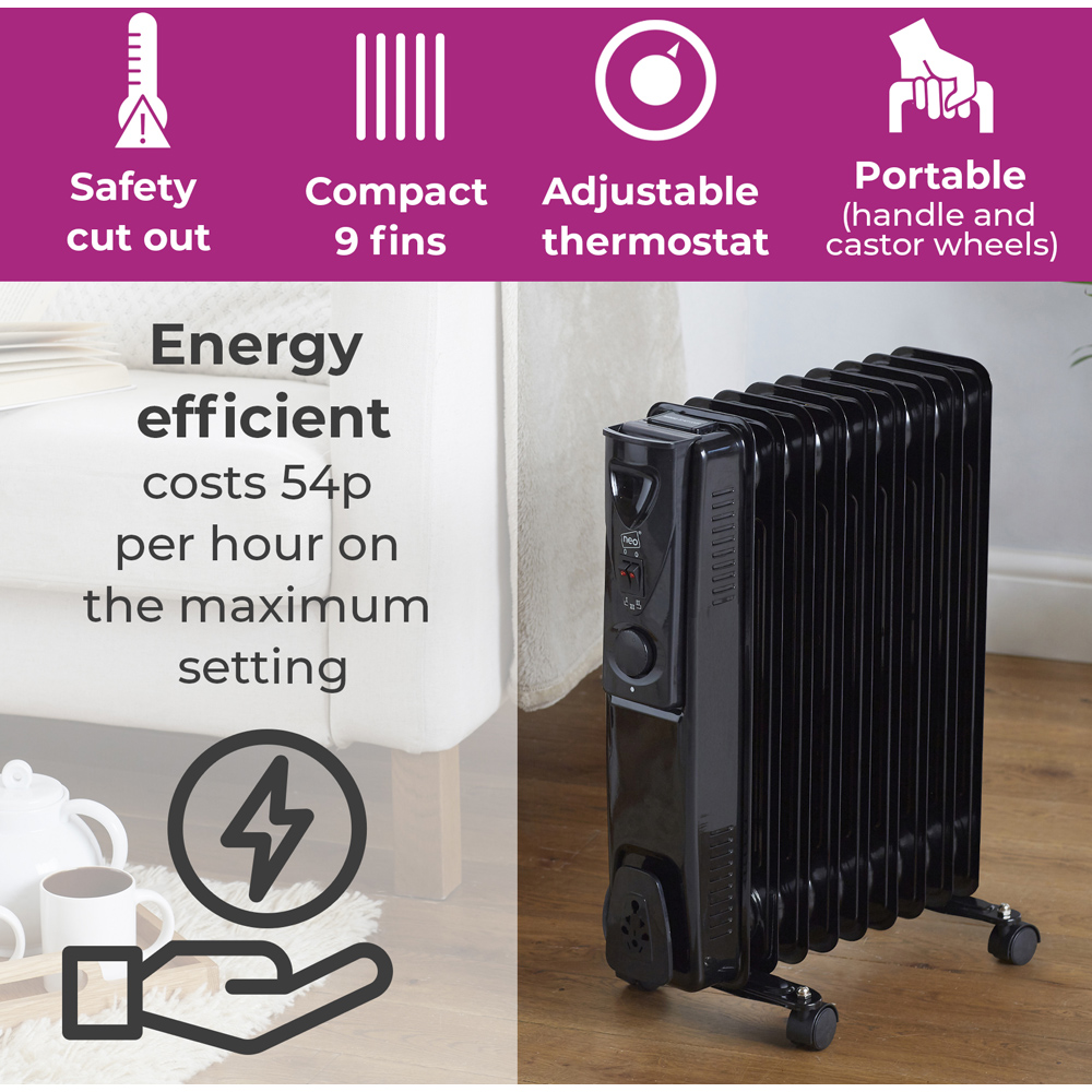 Neo 9 Fin Black Oil Filled Radiator 2000W