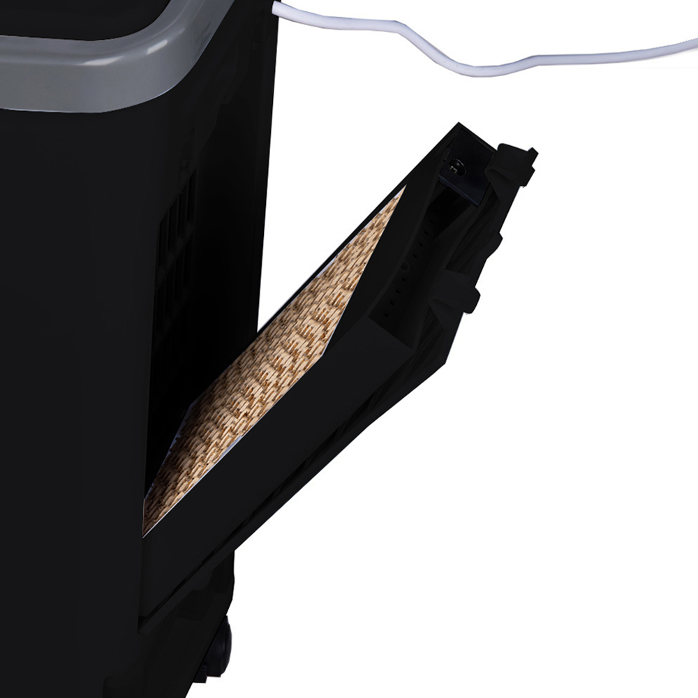 Banish stuffy summer days with this Black and Grey Air Cooler, complete with a remote for effortless control. The four-litre water tank ensures lasting coolness, while three power settings allow you to tailor the breeze to your liking. An automatic oscillation function evenly distributes refreshing air throughout your bedroom, office, or living room.