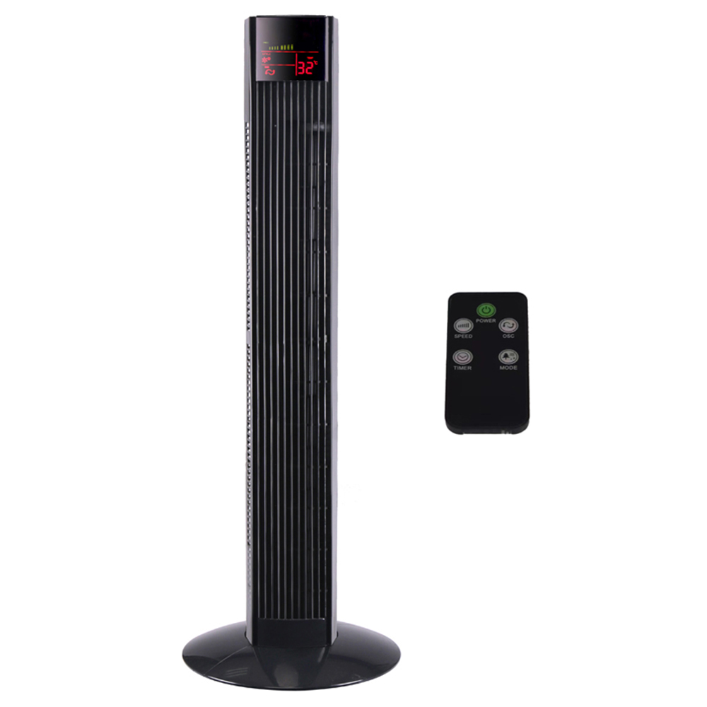 Beat the heat with the Neo Black Tower Fan, a sleek and efficient cooling solution. The 36-inch tower boasts a 90-degree oscillation, ensuring a refreshing breeze reaches every corner. Its space-saving, slim black design is simple to assemble, making it ideal for any environment. Featuring a clear LCD screen, you can easily manage the three-speed settings, three fixed modes, and three oscillating options. A 12-hour timer offers further customisation, allowing you to precisely control the temperature. Complete with a handy remote control, this tower fan is perfect for creating a comfortable atmosphere in shops, gyms, offices, homes and workplaces.