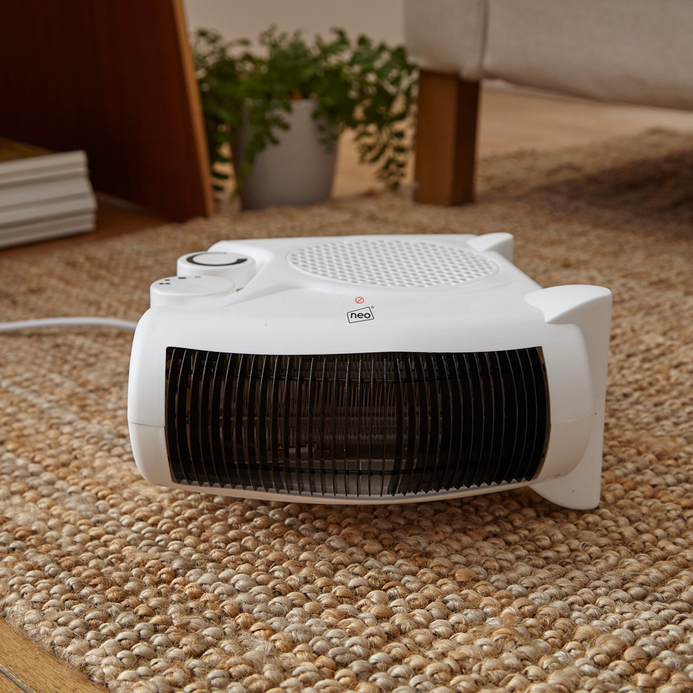 Enjoy even warmth all year round with the Neo Electric Fan Heater. Its lightweight and compact design makes it perfect for any room, from bedrooms to conservatories. This heater boasts two heat settings (1000W and 2000W) and an adjustable thermostat for precise temperature control. Offering versatile heating and cooling options, it's an economical choice for year-round comfort. The convenient on/off indicator light and adaptable upright or flat positioning add to its practicality. Its rapid heating capabilities make it ideal for enclosed spaces.