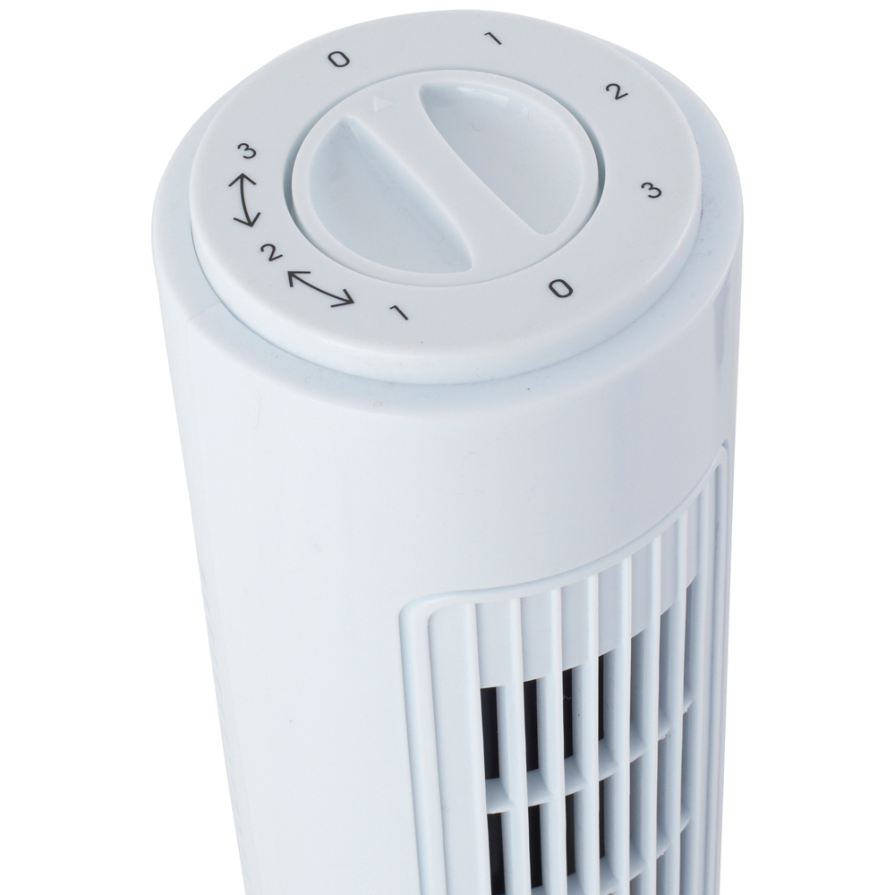 Beat the heat with the Neo White Tower Fan, a sleek 29-inch cooling solution. Experience a consistent, refreshing breeze thanks to its 90-degree oscillation, ensuring cool air reaches every corner. Its slim, white tower design means it fits seamlessly into any space and is simple to assemble. Perfect for diverse environments such as shops, gyms, offices, homes and workplaces, this fan offers complete control over your comfort with three-speed settings alongside fixed and oscillating modes.
