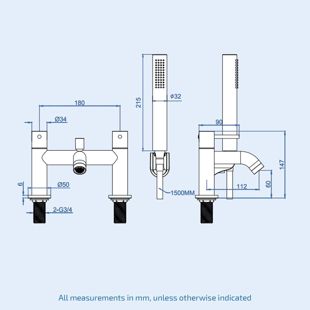 Elevate your bathing ritual with this modern chrome bath shower mixer. Deck-mounted for a seamless installation, this tap boasts a sleek chrome finish and includes a practical handheld shower kit for added versatility. The twin lever design allows effortless control over both temperature and flow, ensuring the perfect bathing experience. Crafted from durable, high-quality brass, this shower mixer is built to withstand the test of time.