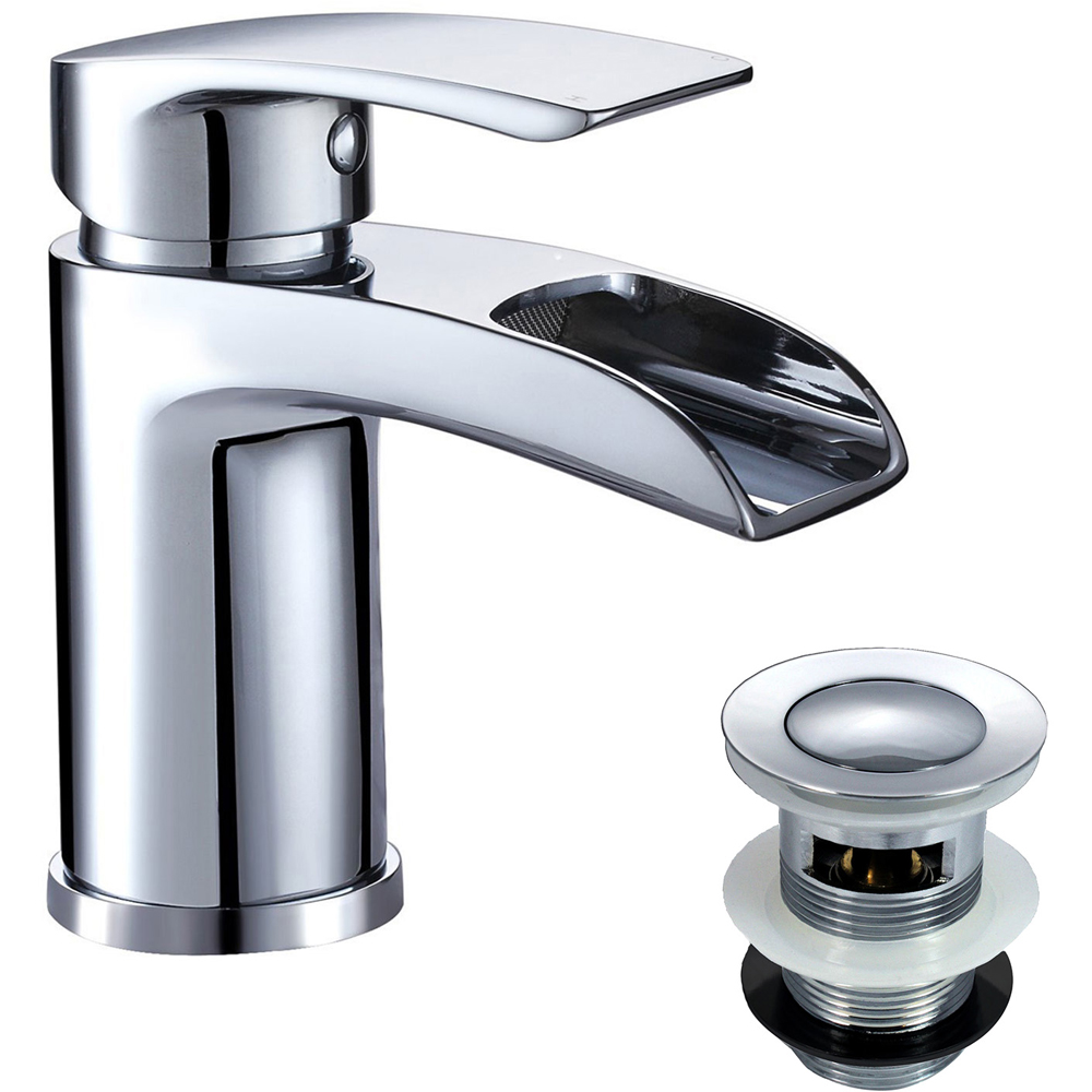 Nes Home Corry Waterfall Cloakroom Chrome Basin Mono Tap with Waste