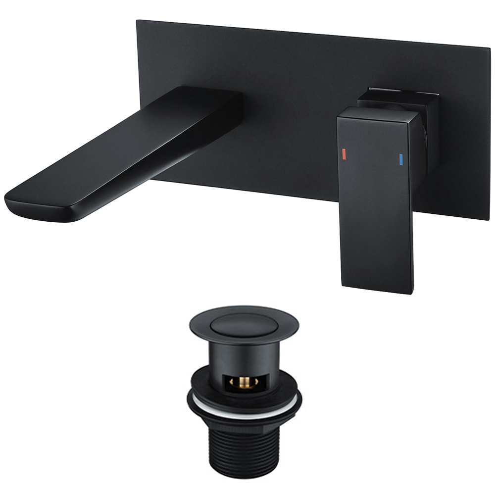Nes Home Finley Wall Mounted Matte Black Basin Mixer Tap with Waste