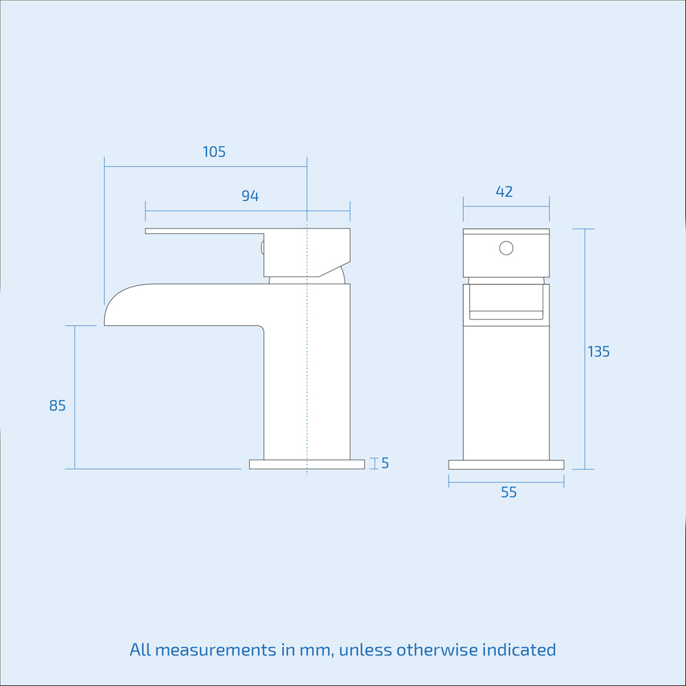Also included is a perfectly matched waterfall basin mixer tap. Both taps are crafted from solid brass and incorporate advanced ceramic disc technology, ensuring long-lasting durability and drip-free performance. The reliable cartridge allows for smooth and precise adjustments, while the reflective 40-micron chrome finish adds a sophisticated touch to your décor.