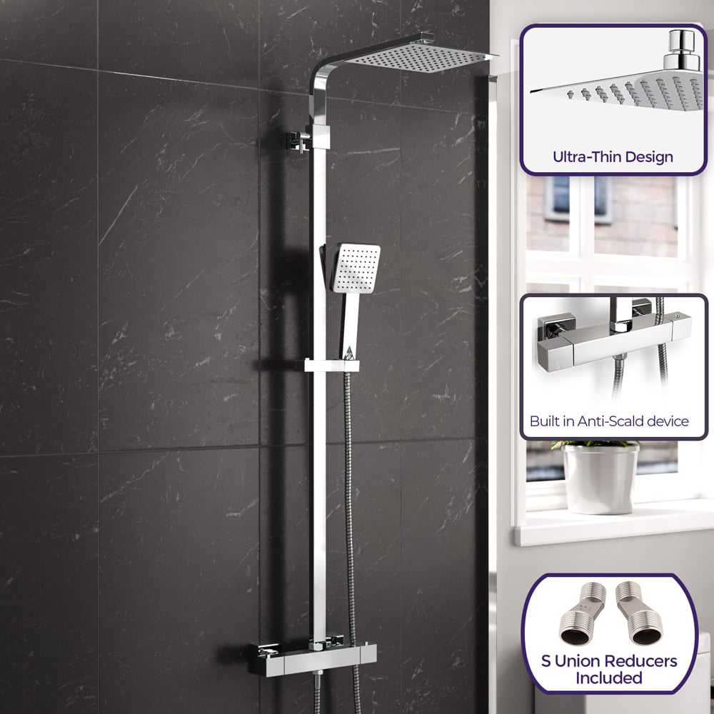 Nes Home Square Chrome Exposed Thermostatic Mixer Shower Set