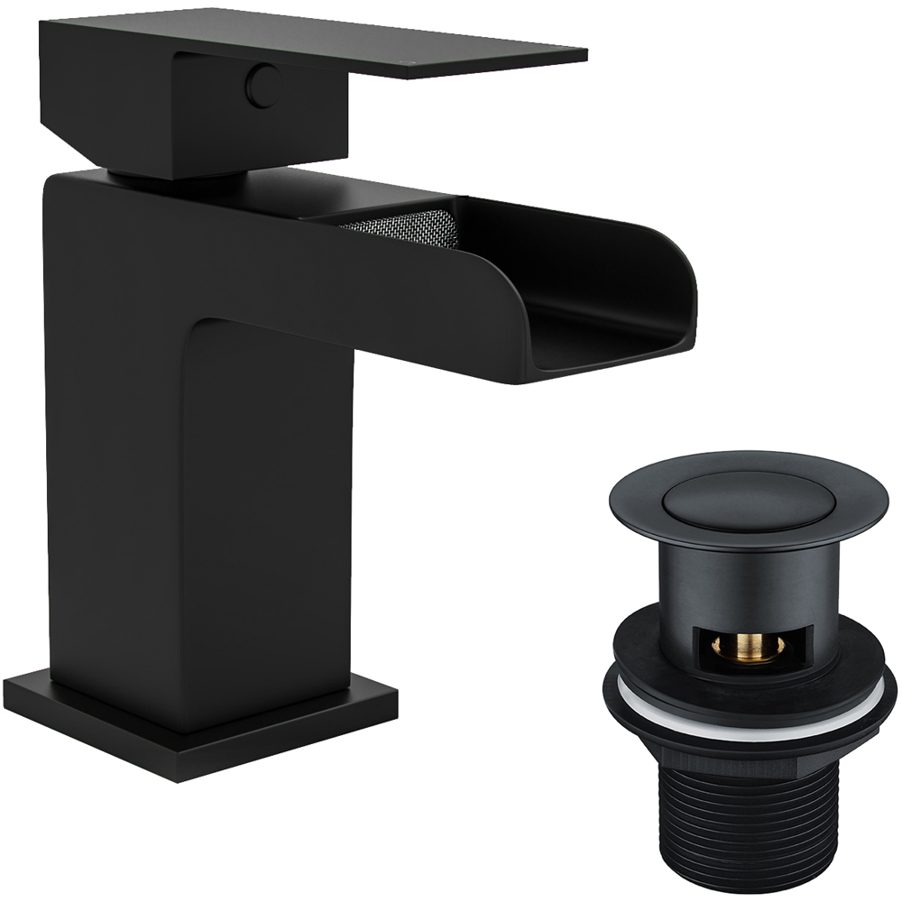 Nes Home Waterfall Matte Black Basin Mono Mixer Tap with Waste