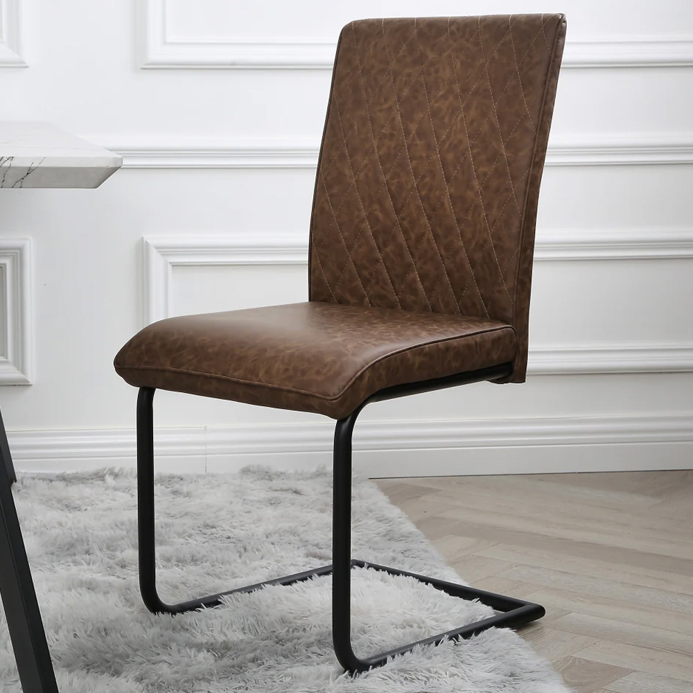 Introduce an industrial edge to your dining area with the Nestor Dining Chairs from Home Garden Direct. Sold as a set of two, these brown chairs boast a streamlined design and high-quality construction, ensuring they integrate effortlessly into any dining space. The leather backrest and robust metal chrome frame offer both exceptional comfort and long-lasting durability. Upgrade your dining experience with these stylish and comfortable industrial-inspired chairs.