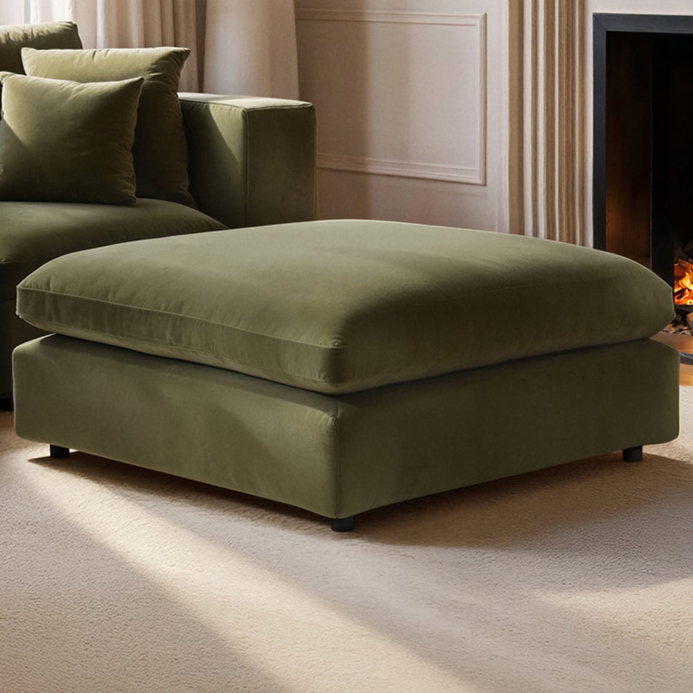 Solace+Co Asher Khaki Green Velvet Footstool