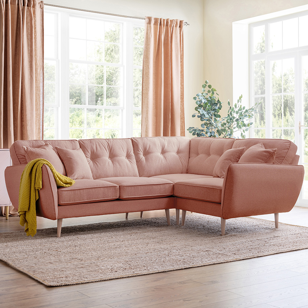 Opry Faro 4 Seater Button Back Soft Pink Corner Sofa