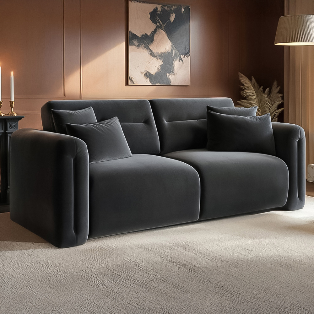 Solace+Co Mabel Grey 2 Seater Velvet Sofa