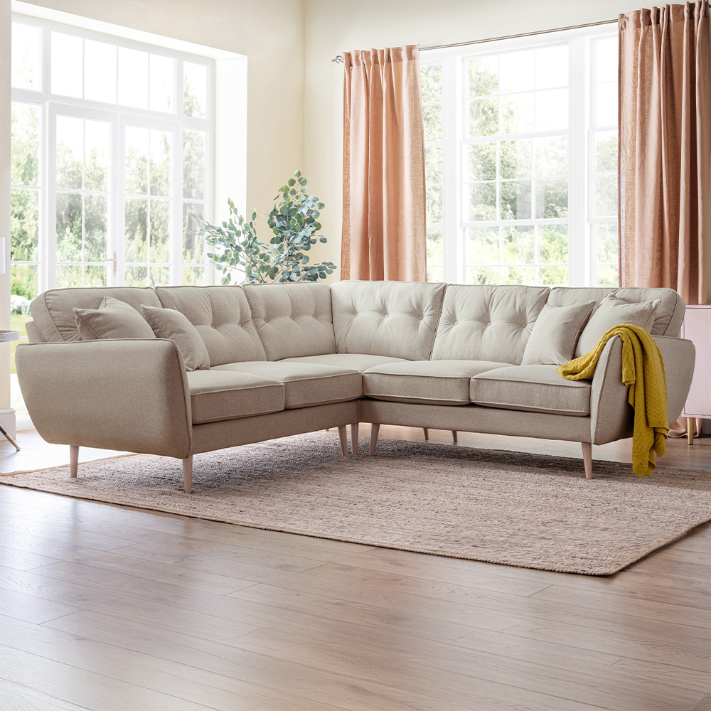 Opry Faro 4 Seater Button Back Beige Corner Sofa