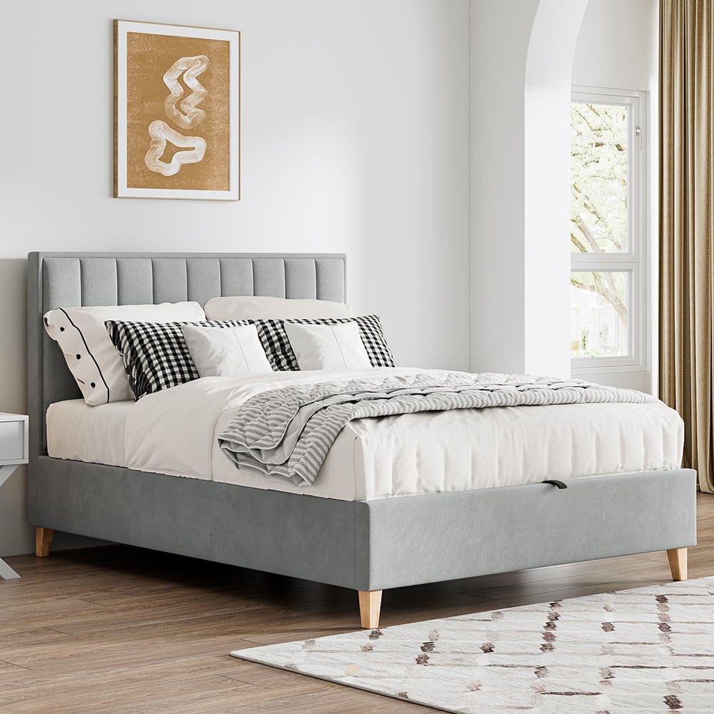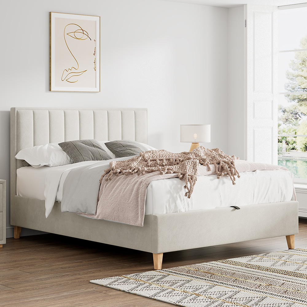 Solace+Co Sigrid Sand Velvet Double Ottoman Bed
