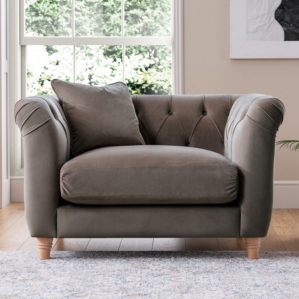 Solace+Co Maisie Grey Velvet Swivel Armchair