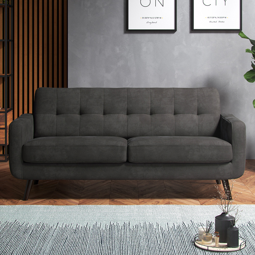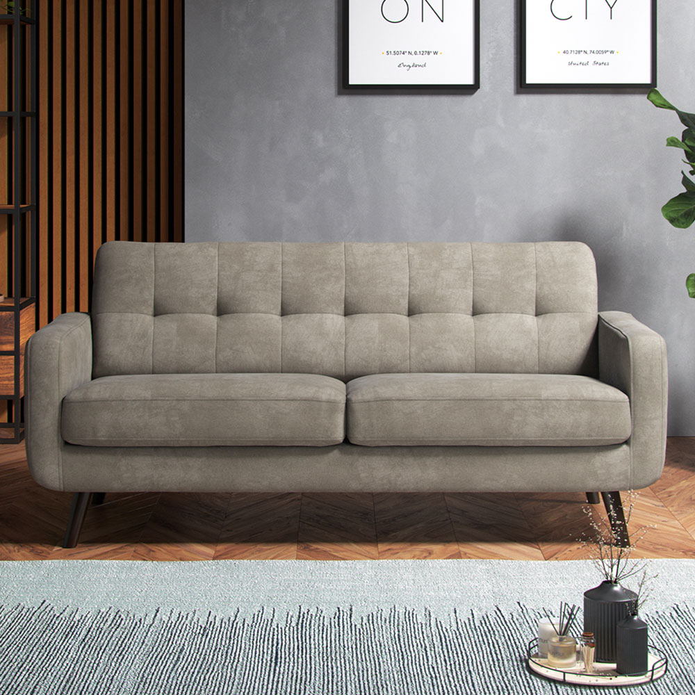 Solace+Co Mabel Grey 3 Seater Velvet Sofa