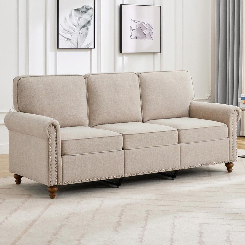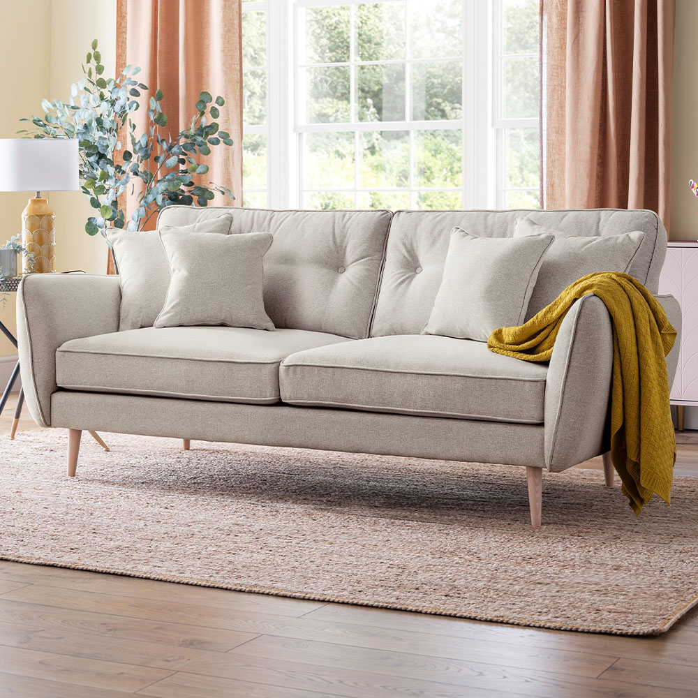 Solace+Co Mabel Beige 3 Seater Chenille Sofa
