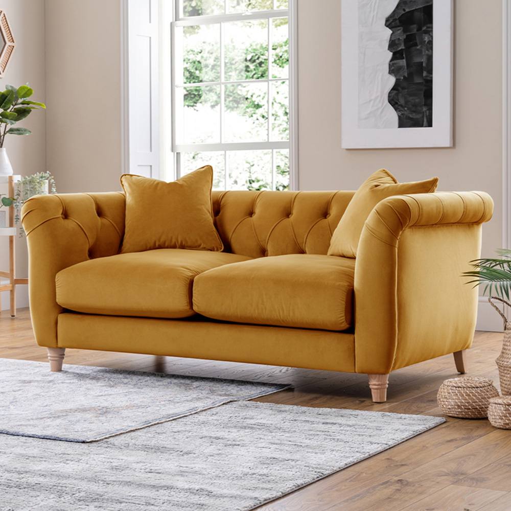 Solace+Co Wilfie Mustard Chenille 2 Seater Sofa