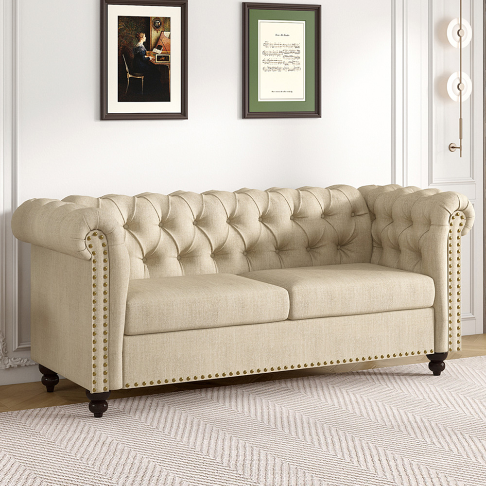 Solace+Co Mabel Beige 2 Seater Chenille Sofa