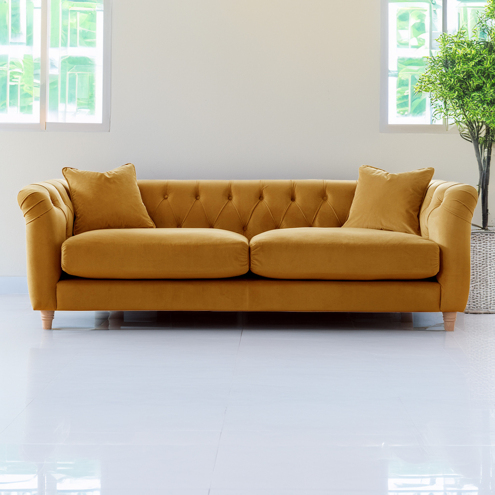 Solace+Co Wilfie Mustard Chenille 3 Seater Sofa