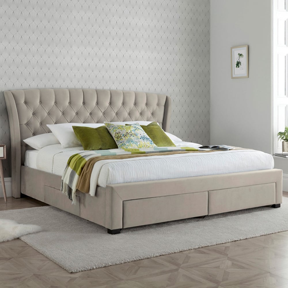 Bedmaster Newton Double Warm Stone Velvet Storage Bed Frame with 4 Drawers