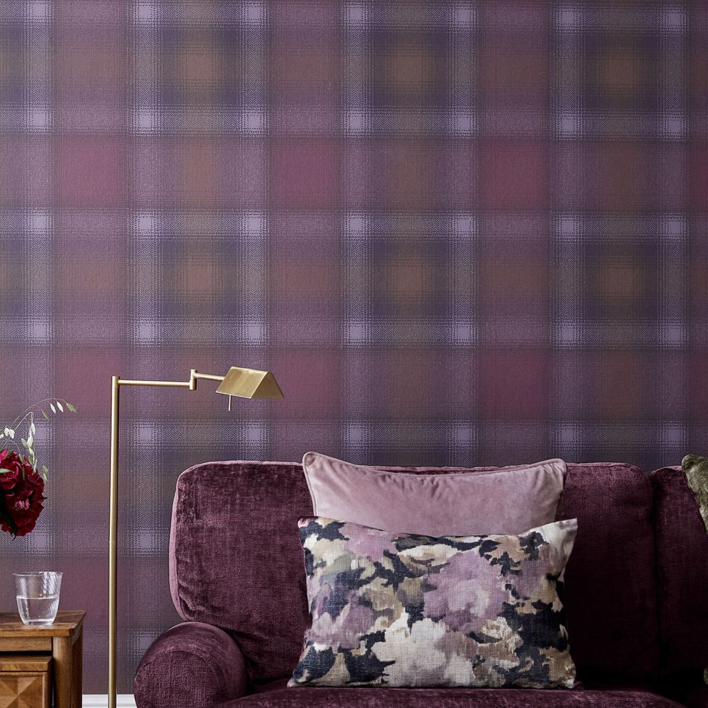 Next Town and Country Check Purple Wallpaper