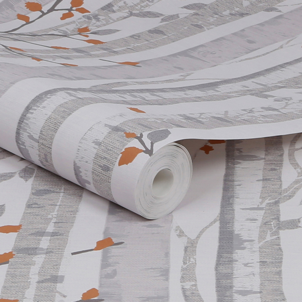 Emerge yourself into a mystical woodland in this striking design. The cool tones of grey mixed with a pop of colour brings life to your walls. Printed on a matt paper this design has a luxurious finish whilst also being paste the wall making this wallpaper easy to hang.