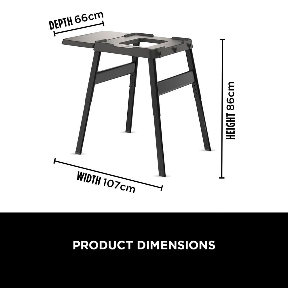 Take your outdoor cooking station to new heights with this heavy-duty, adjustable stand and side table for your Ninja Woodfire Outdoor Oven or Electric BBQ Grill. Adjustable height. Includes side table for extra food preparation space. Keeps grill or oven in place. Dimensions: 66cm x 86cm x 107cm. Requires assembly. Includes: one Ninja Woodfire universal adjustable stand, one side table, four stand legs, and 14 hex screws, one hex key. Keeps grill or oven in place.