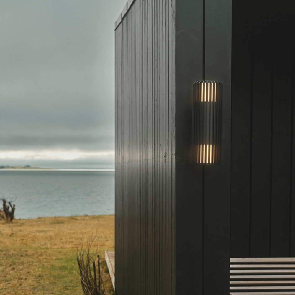 The Aludra outdoor wall light, a stunning example of Jacob Jensen Design's minimalist aesthetic, casts light both upwards and downwards, creating a captivating play of light and shadow. Its robust construction ensures it withstands even the harshest weather conditions, making it a perfect choice for illuminating your outdoor areas and adding a welcoming atmosphere.