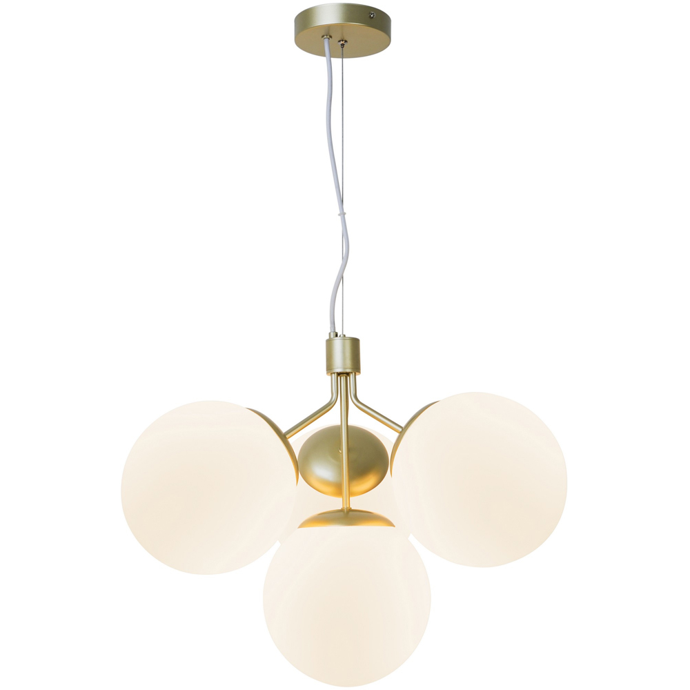 Reimagine classic chandelier style with the Ivona. This stunning light features several beautiful glass balls, emitting a beautiful light for a modern yet extravagant look. The elegant design combines brass and opal glass for a touch of glamour. Each glass ball is mouth-blown and handcrafted, resulting in unique variations in glass thickness and the potential for charming air bubbles – adding character and vibrancy.